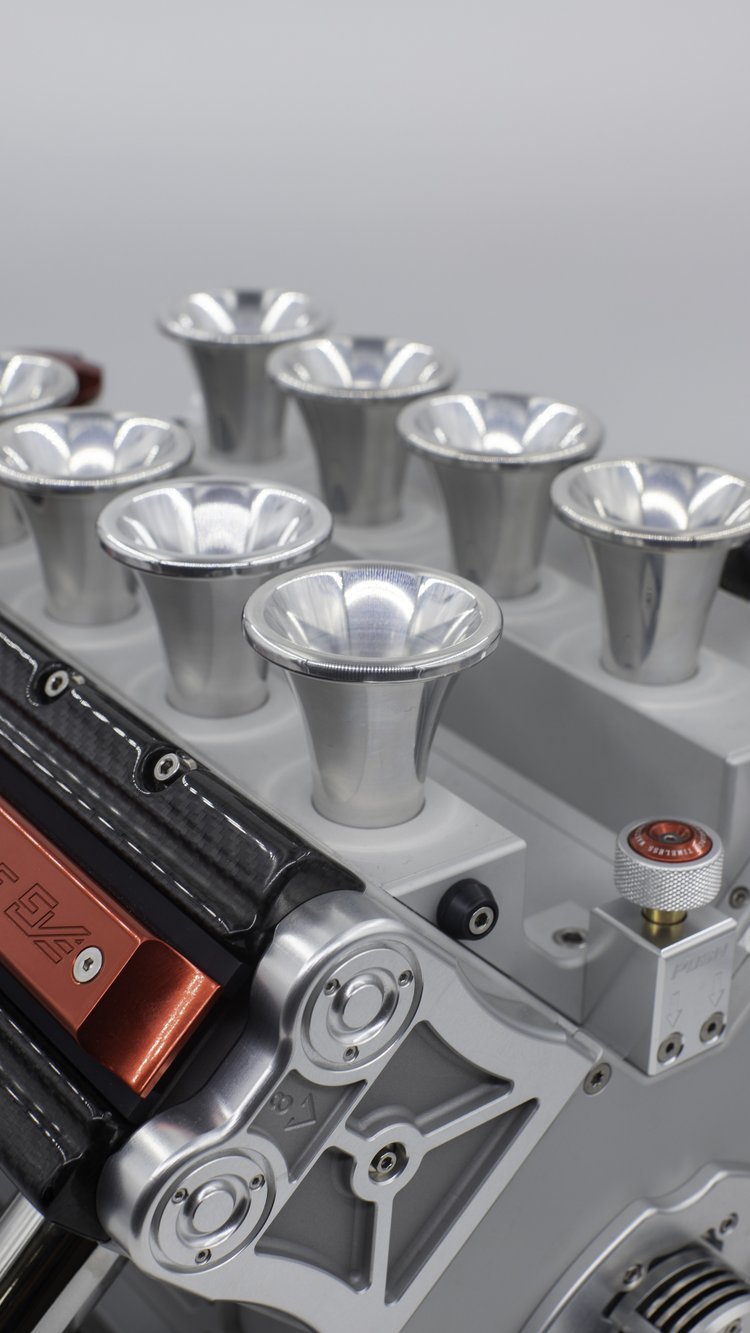Cam Covers & Baseplate: Jet-Black high pressure thermoset carbon fibre (2×2 twill), hand laid 45 degree diagonal